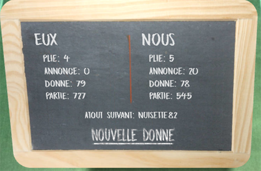 Ardoise en fin de donne :